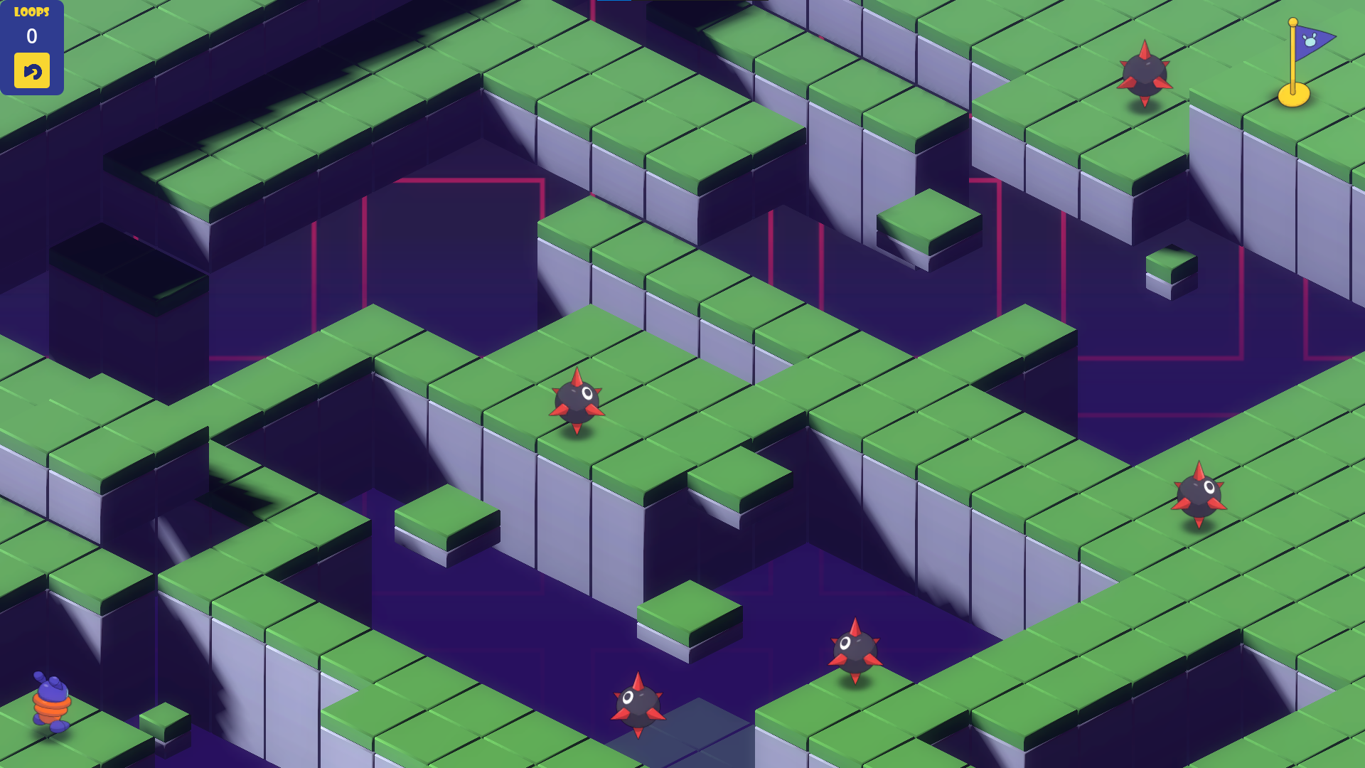 Jump through a challenging level and reach the end! Can you avoid being looped back at the beginning?